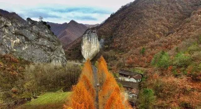 绵延在秦岭深处,双车道,柏油路,行道树水杉遮天蔽日,沿途田园风光宁静美好。