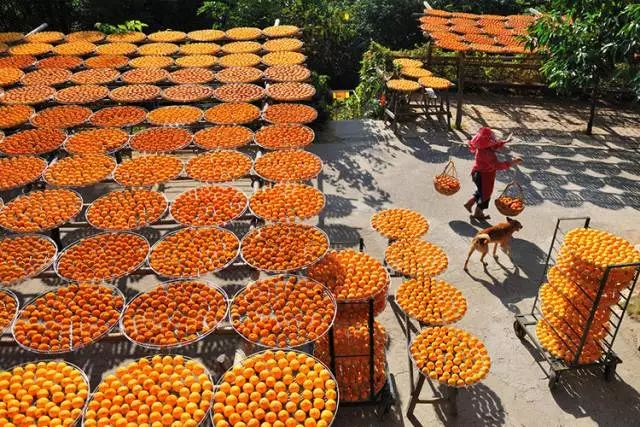 每年秋冬家家户户加工柿饼,漫山遍野红红火火,成为一道靓丽的风景线。
