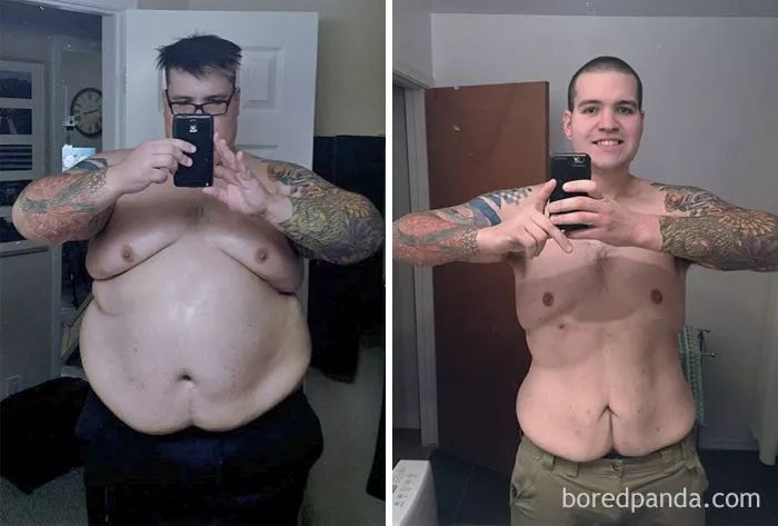 眼看着自己身上的肉慢慢堆积了起来,国外的boredpanda网站最近召集了一批网友发出自己减肥前后的对比照。