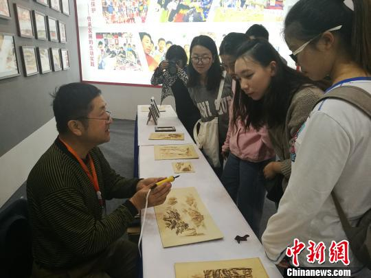刘凯的弟子时联峰向参观的学生介绍“火笔” 刘浩 摄