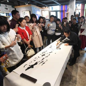 当天,台湾泰雅族原住民出身的中华台北书法家协会监事主席、台湾少数民族书法家谢石鸿,在有着浓浓台湾少数民族气息的福州三坊七巷唯美客文创聚落“原梦餐艺”作主题为“书为心宽”的书法讲座,并现场进行书法表演,吸引不少书法爱好者到场聆听、互动。