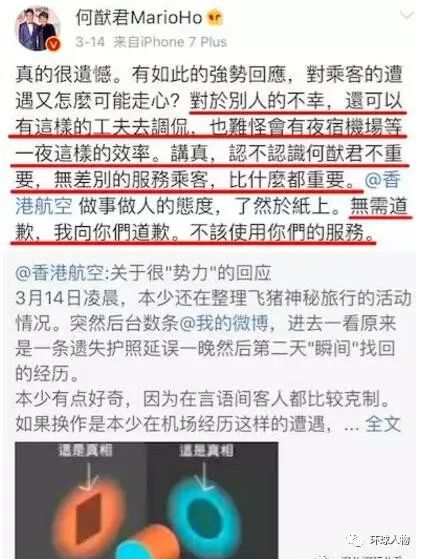 前一阵何猷君也曾浮出水面,圈过一波粉,当时是怒怼某航空公司势利眼,事情是这样的: