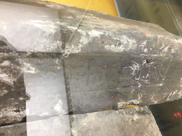 记者在德胜门的古钱币博物馆拍摄的刻着:明“万历四年德州营造”款的城砖。