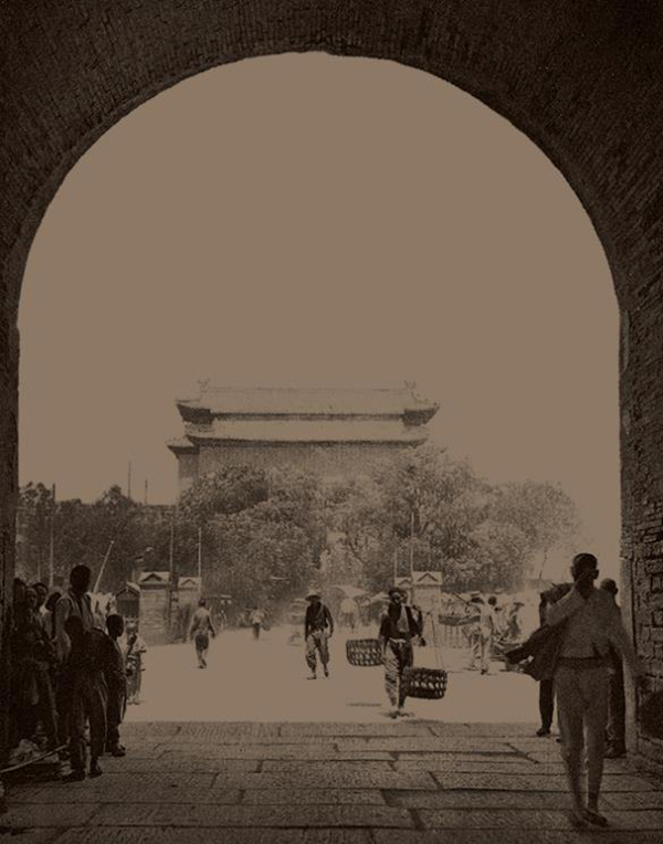 从德胜门城楼门洞所见街景。