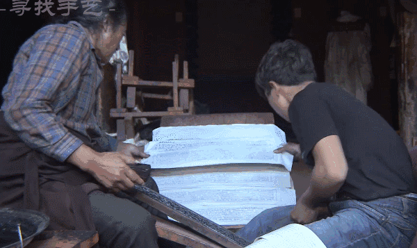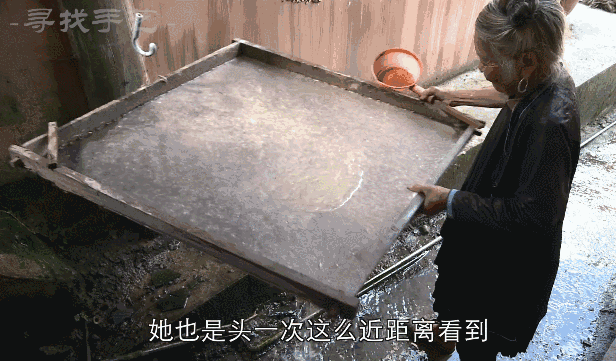 两位老奶奶正在用极其简单的方式造纸