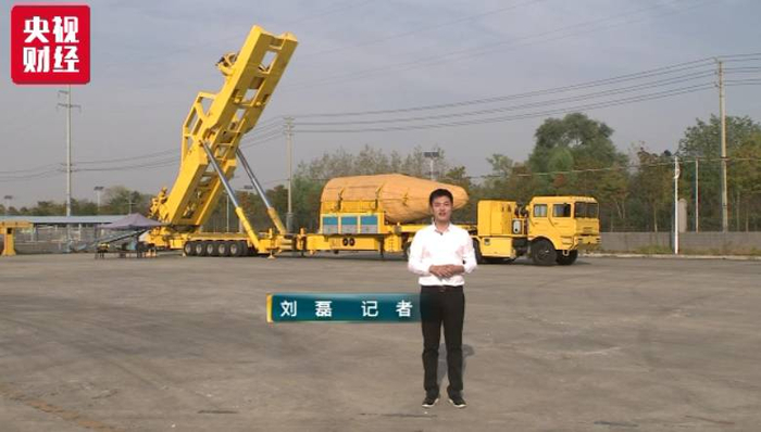 记者 刘磊:这就是我刚刚提到的大黄车,名字叫做火箭运输发射车,这个大家伙也是由航天科工集团自主研发制造的。火箭躺在上面运到发射场,等完全起竖后就可以直接发射了。和快舟一号的发射车不同的是,它的载重量更大,而且可以车、架分离,执行任务的时候更加机动灵活。