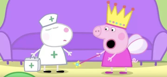心情不好就发脾气、跺脚,对她的好朋友也很公主病。变装舞会的那集,Peppa把自己装扮成一个公主,一见到自己的好朋友小羊苏西,就不客气的命令苏西向自己鞠躬。
