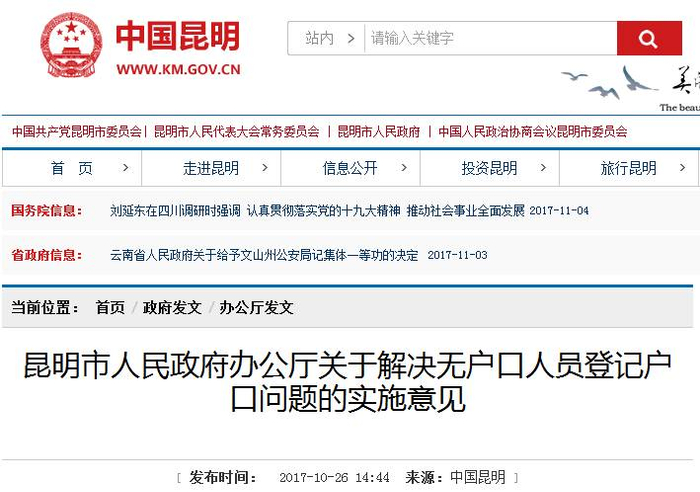根据昆明市人民政府办公厅日前发布的《关于解决无户口人员登记户口问题的实施意见》,要为昆明十五类无户口人员申请解决申请办理常住户口登记问题。