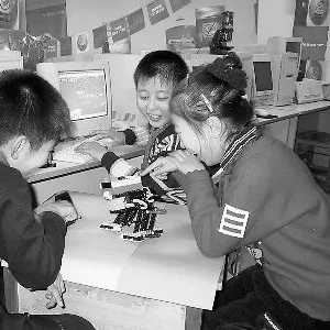 孩子们在少年宫课外班学习制作机器人。黑龙江日报记者 董新英摄