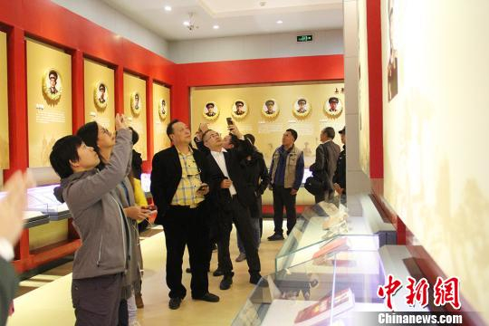 图为海外华文媒体代表观看展品。 袁晶 摄