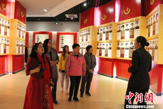 图为海外华文媒体代表参观新疆兵团第六师五家渠市将军纪念馆。 袁晶 摄
