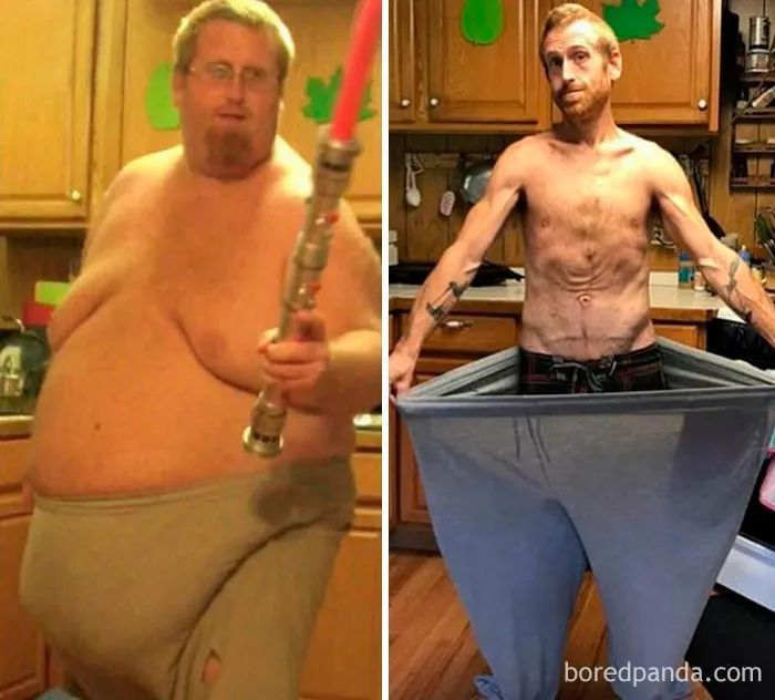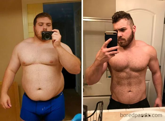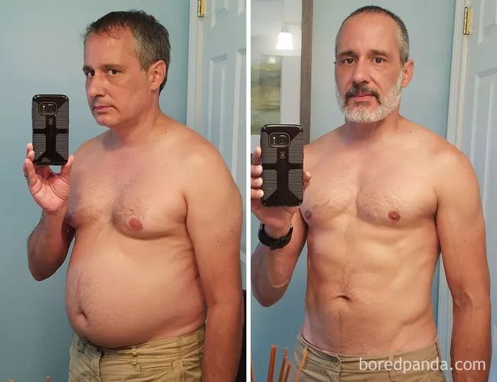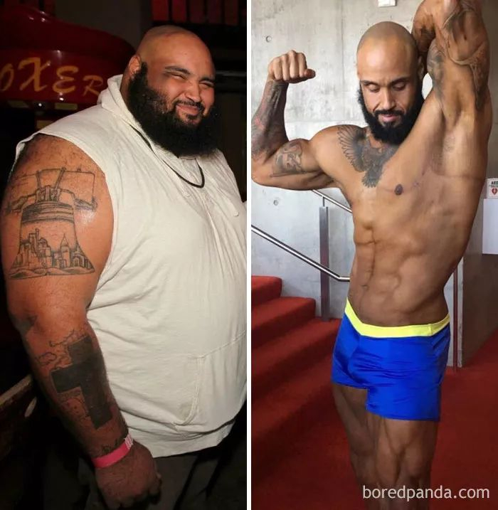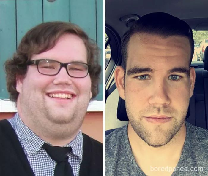 眼看着自己身上的肉慢慢堆积了起来,国外的boredpanda网站最近召集了一批网友发出自己减肥前后的对比照。