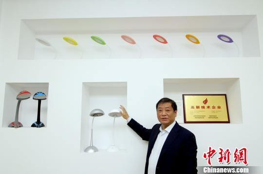 李春峰介绍最新研发推出的应用量子点封装器件的QLED高显色照明台灯。 张道正 摄