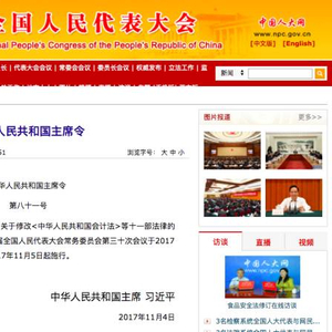 据人民日报客户端报道,11月4日下午,十二届全国人大常委会第三十次会议表决通过关于修改会计法的决定,规定“会计人员应当具备从事会计工作所需要的专业能力”。此前,会计法规定“从事会计工作的人员,必须取得会计从业资格证书”。