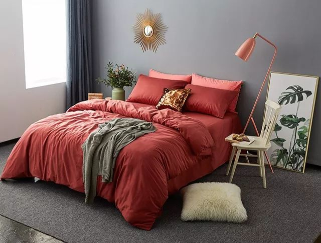 绯红色、深秋黄过年过节用上会非常亮眼,平时用也能让卧室瞬间充满艺术气息;橡木棕更适合搭配素雅的家居风格。