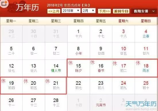 2018年放假时间表公布!除夕的前一天竟然是......