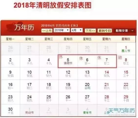 2018年清明放假安排: