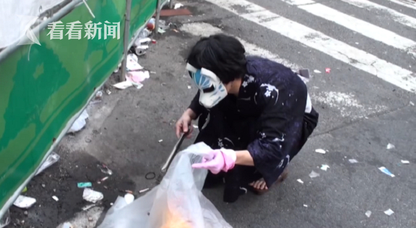 当地一些热心民众看不下去,自发上街捡垃圾。志愿者们一手拿着垃圾袋一手捡垃圾,不到十分钟就能装满一整袋,经过数小时才让街道恢复原来的整洁面貌。