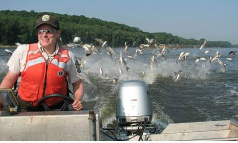 巴特勒几乎每天都会来到密西西比河东岸树林中一个他自己的码头,将电动渔船推入河里,在码头上下延伸100英里的范围里捕鱼。秋天的一个早晨,他向上游行驶了不到10分钟,将船停在河中的一个浅滩边,开始下网。不到1个小时撒下的两个网为他收获了400磅鱼。