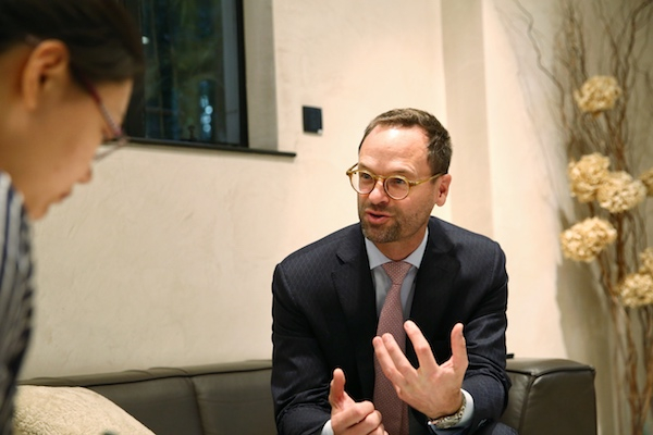 德国美诺Miele公司执行董事及管理委员会成员Axel Kniehl(右)接受采访。