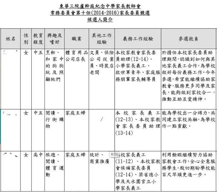 和文章开头的“浮夸”自荐对比下,记者觉得香港家长们还是挺实在的。虽然也会看到一些“身世显赫”的参选人,但多数人会选择在自我介绍中多写一些实在的工作经历,以及自己如何做贡献。