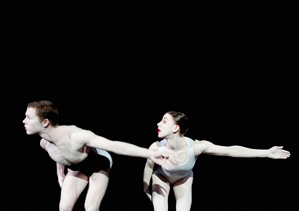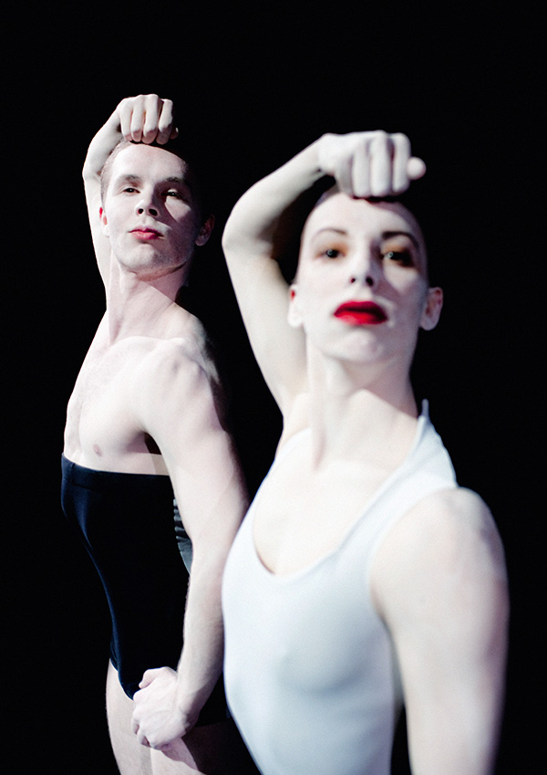 在难以捉摸的文字韵律中,舞者们不断重复着动作,非常具有爆发力,当聚光灯打在两位舞者身上,就像阴阳的关系。两人身穿黑白舞衣,从舞台右侧移动到左侧,一共才4分钟,可能是舞蹈历史上最短的作品。