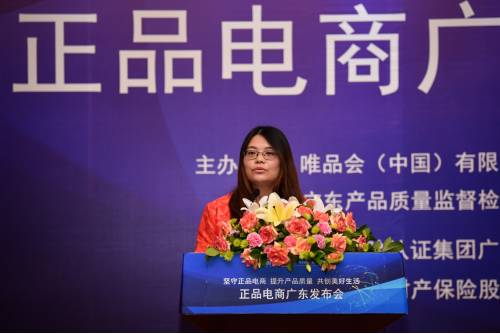 随后,广东产品质量监督检验研究院业务部副部长黄雅玫通过“我院将从检验检测、认证、增值服务、提供贯穿平台全链条的整体解决方案、提供质量管家型增值服务等多个纬度与唯品会展开深度合作,通过神秘抽查、质量风险预警、新兴产品检测标准研究、‘优品优选’认证等多个层面全力管控产品质量、扶持质量升级。”的发言表达将联手唯品会把正品电商践行到底的行动规划。