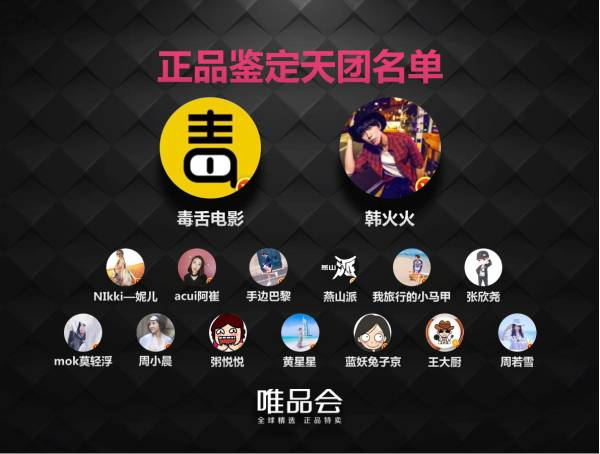 广州发布会上,黄红英也正式公布第一批“正品鉴定天团”成员名单,其中不仅包括时尚造型师韩火火,还有抖音达人张欣尧、潮流旅行玩家@我的旅行小马甲 、时尚专栏作家 @手边巴黎urruolan 、人气漫画家 @蓝妖兔子京 等。更令人惊喜的是,年轻会员越来越多的唯品会,此次更力邀人气公众号毒舌电影加盟,在兼具庞大用户基数、优质平台形象等优势之上,二者更凭借在年轻态度和品质追求等精神内核上的一致,以强强联合的姿态,高度把握未来趋势,深度锁定追求正品消费感受的年轻受众群体。