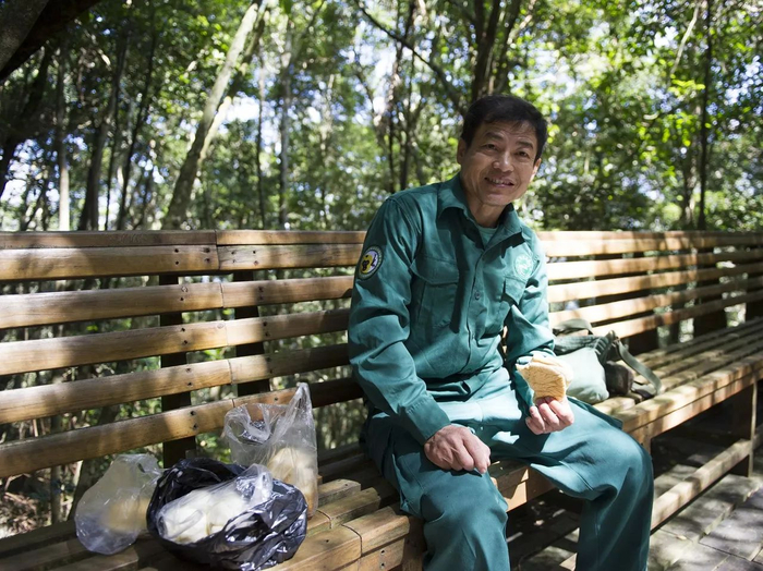 与陈庆年龄相仿的谢赠南,是霸王岭林场工人的第二代,也是由林场伐木工人、公路养护工人转为长臂猿生存环境守卫者。