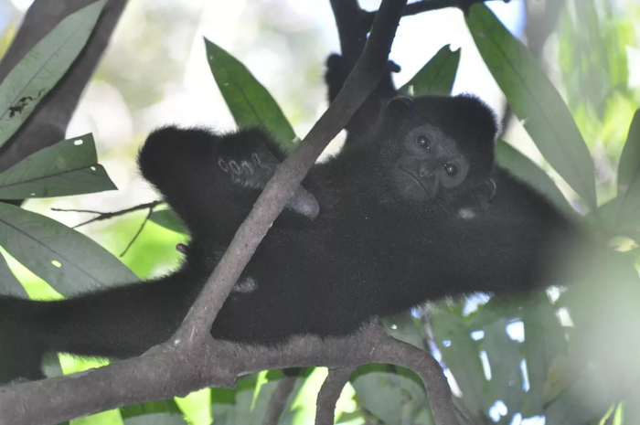 海南长臂猿,因头上长有一顶“黑帽”,故得名黑冠长臂猿。它们是最濒危的“人类亲戚”,被保护国际基金会宣布名列全球25种濒危灵长类物种之首,其濒危程度已远大于大熊猫。