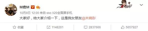 “大家好,给大家介绍一下,这是我女朋友@关晓彤”。