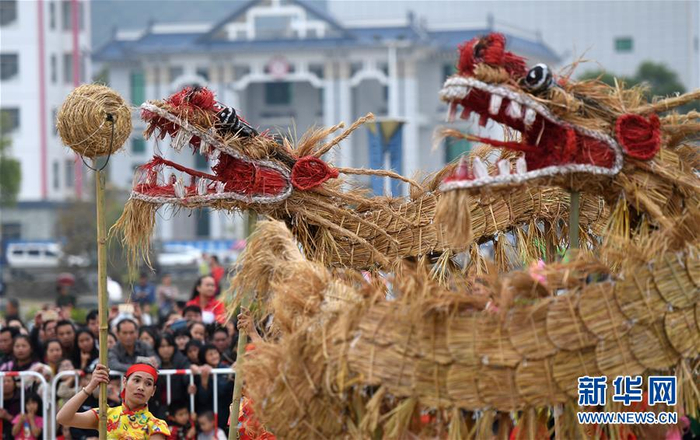 当日,广西罗城仫佬族自治县举行舞草龙大赛,来自各乡镇的草龙代表队会聚县城,欢庆一年五谷丰登,祈福来年风调雨顺。