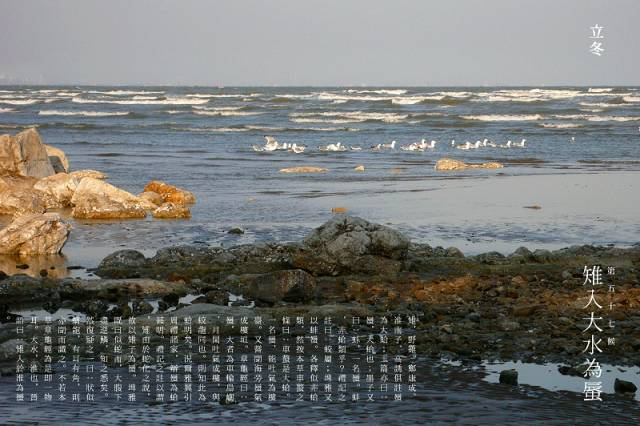 三候雉入大水为蜃 | 雉指野鸡,蜃为大蛤。鸟儿蛰伏,大蛤却在繁殖,古人以为它们是野鸡变成的。