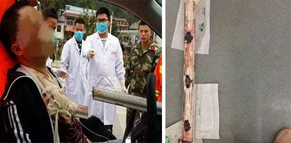 ▲图:从驾驶人身体中取出的栏杆