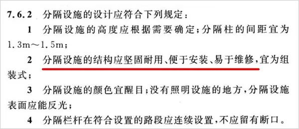 ▲图:《城市道路交通设施设计规范》(GB 50688-2011)中关于“分隔设施的设计规定”的内容