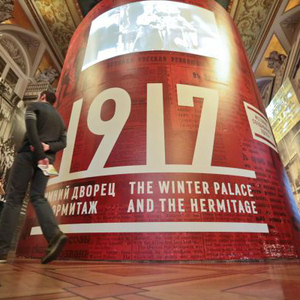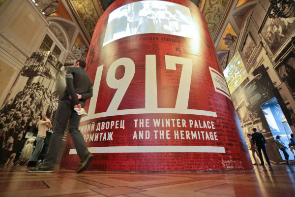 10月26日,俄罗斯圣彼得堡冬宫举办纪念十月革命100年展览。(莫京娜 摄)