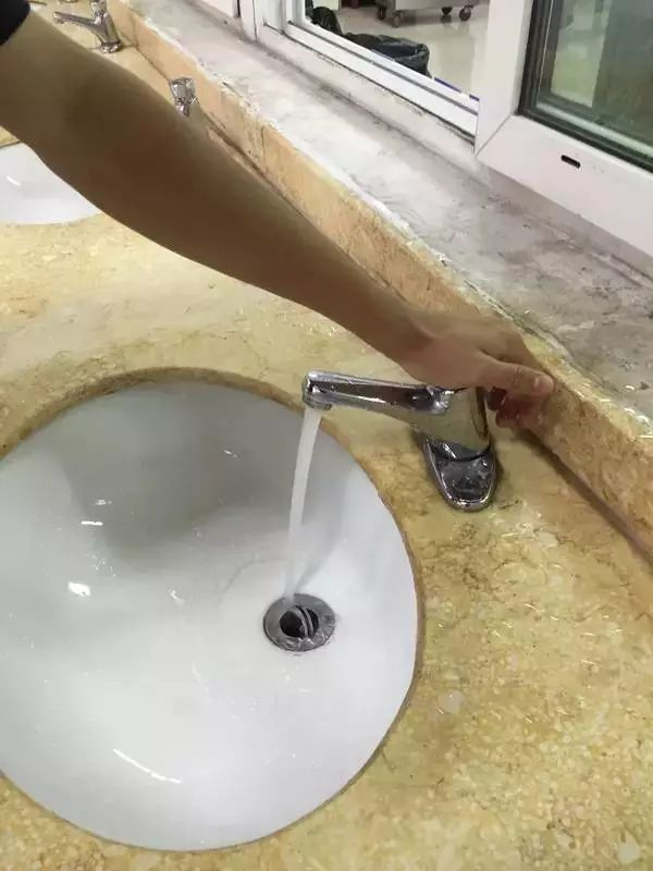 刚把手从按钮上抽出来,水就停了