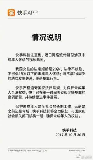 最新的消息是,快手科技回应称,已经对平台上涉及“未婚妈妈”等类似视频,进行了清理。对于自称年龄低于14岁用户的案例,快手平台已固定证据与有关部门沟通。