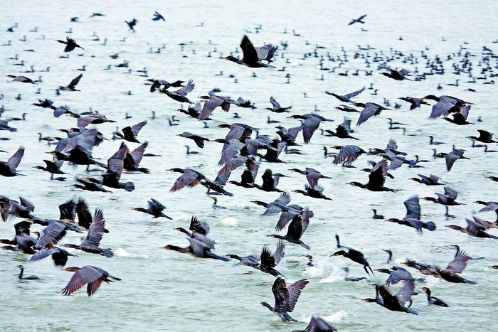 大批鸬鹚在捕鱼