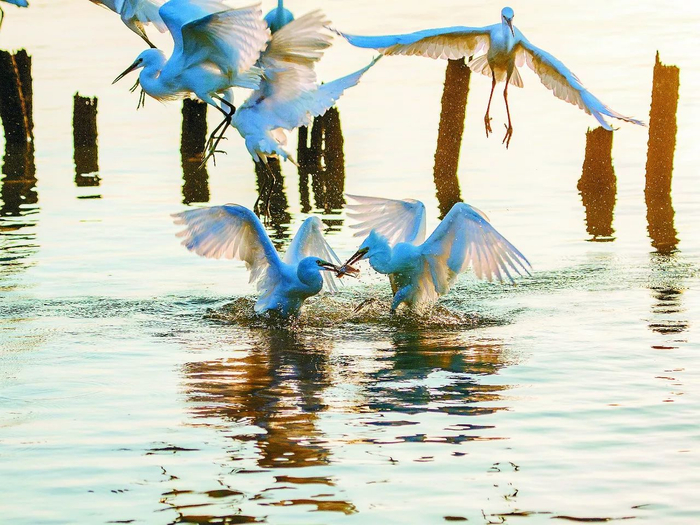 争相捕食的小白鹭