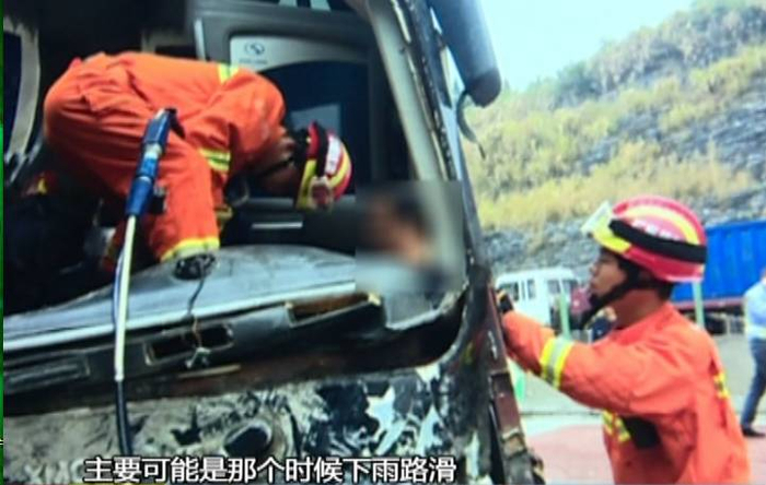 据司机描述,客车撞上山体是因为雨天再下坡路段打滑,才会造成这样的悲剧。