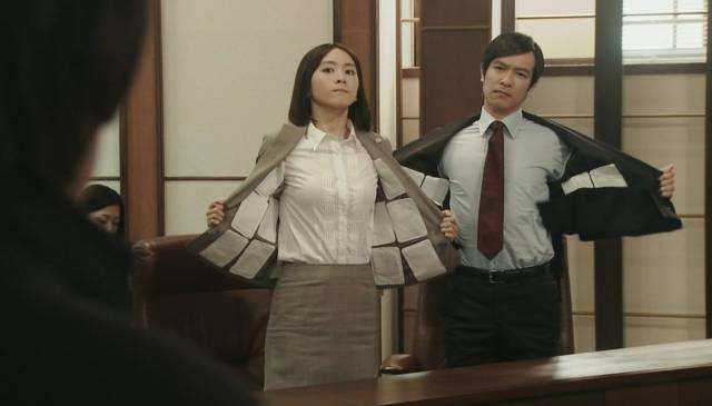 日本电视剧里,男女主角把暖宝贴在西装里侧。(视频截图)
