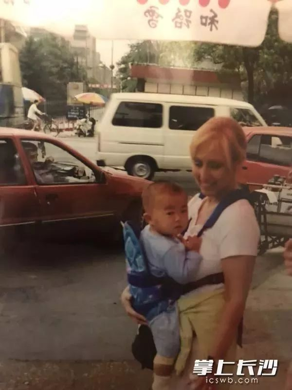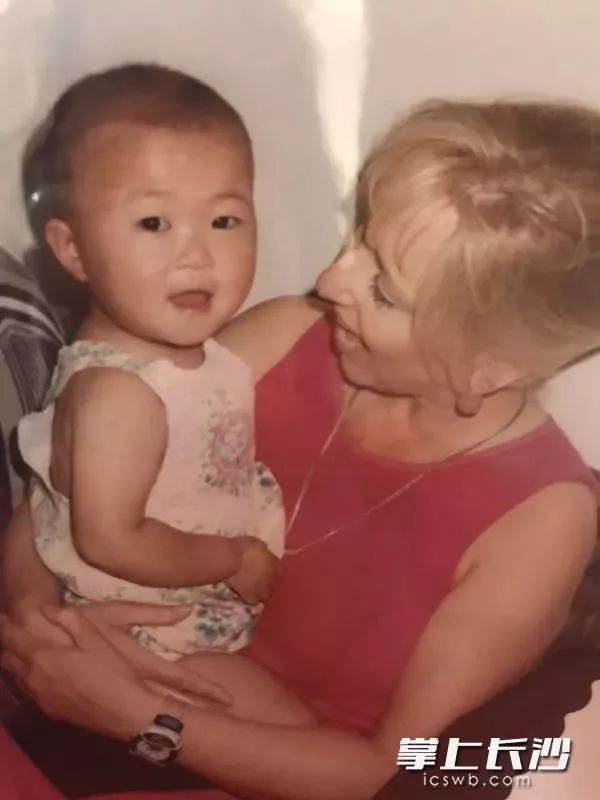 照片是收养杜春佳的美国母亲当年带着她在长沙街头所拍。
