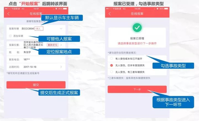 4.无论是单方事故;多方事故还是人伤事故,让全部事故在线报案得以实现。