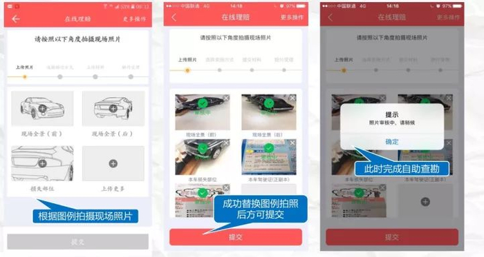 无需等待查勘员,理赔只要两步走,拇指一点,手机一拍,立即搞定,客户再无等待烦忧!