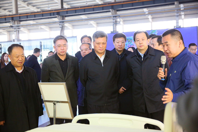 在集团展厅和产品演示区,马兴瑞一行听取了集团负责人关于企业理念、战略布局、团队建设以及“创新+创业+产业”联动发展商业模式等情况的介绍,询问了集团项目在广东的开展情况,要求中山、惠州两地做好相关项目的落地转化工作,同时对集团未来长远发展规划提出了建议。随后,马兴瑞一行重点考察了工业机器人本体、精密摆线针轮减速器、农业植保无人机、医养康复机器人和特种机器人的等项目。马兴瑞指出,哈工大机器人集团在加强工业机器人核心技术研究的同时,还要不断提高行业知名度、扩大应用范围;在农业植保领域,可通过政府引导,挖掘潜在需求,助力农业生产实现无人;顺应老龄化社会到来和大健康产业兴起,加快医养康复机器人研发和产业化进程。