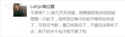 昨天,在下瓦房上班的李女士中午在单位旁边的“河西下瓦房怡乐天地底商7-11 ”买了一份饺子吃,没想到吃到一半发现,饺子底部竟然有一只已经被压扁的虫子,顿时觉得十分恶心,并在微博上曝光了此事。