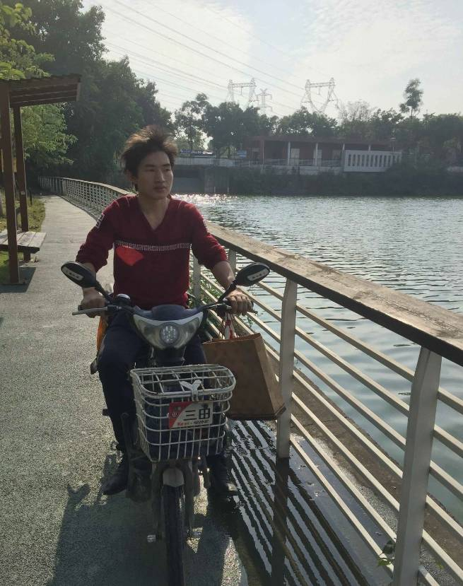 初冬时节,广州的气候依旧温暖。下午15时许,送完当天最后一份外卖的冉乔峰,骑着他那辆风雨相伴的单车,如约而至。外表看上去,与其他的打工青年没什么区别。见小新的镜头对准他,有些腼腆,将目光看向别处。从略木讷的外表下,很难看出他有一颗细腻的写诗的心。