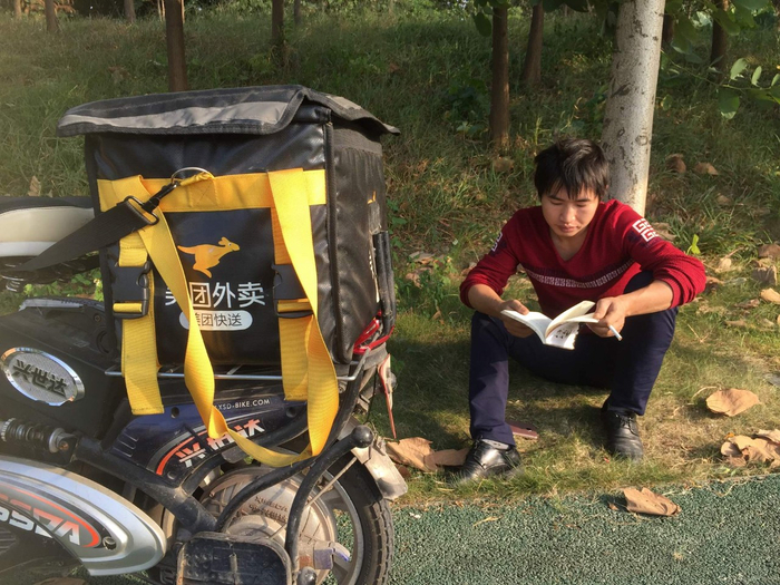 冉乔峰说:做快递装车搬运工、送外卖,是为了生活、生存;而写诗,是精神上的寄托和满足!