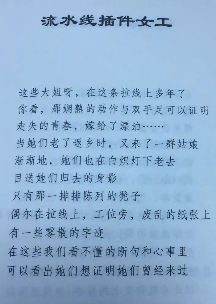 这些诗句,均出自“打工诗人”冉乔峰之手。在他的笔下,故乡、山野不再是贫穷的象征,而是充满诗情画意;车间、流水线不再是日复一日的沉闷劳作,反而变得生动有趣。